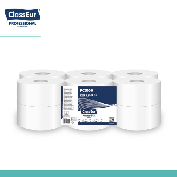 Carta igienica bianca di qualità in cellulosa, 2 veli, adatta per aree WC condivise, settore Horeca, uso pubblico, centri educativi, club sportivi, piscine, ecc.