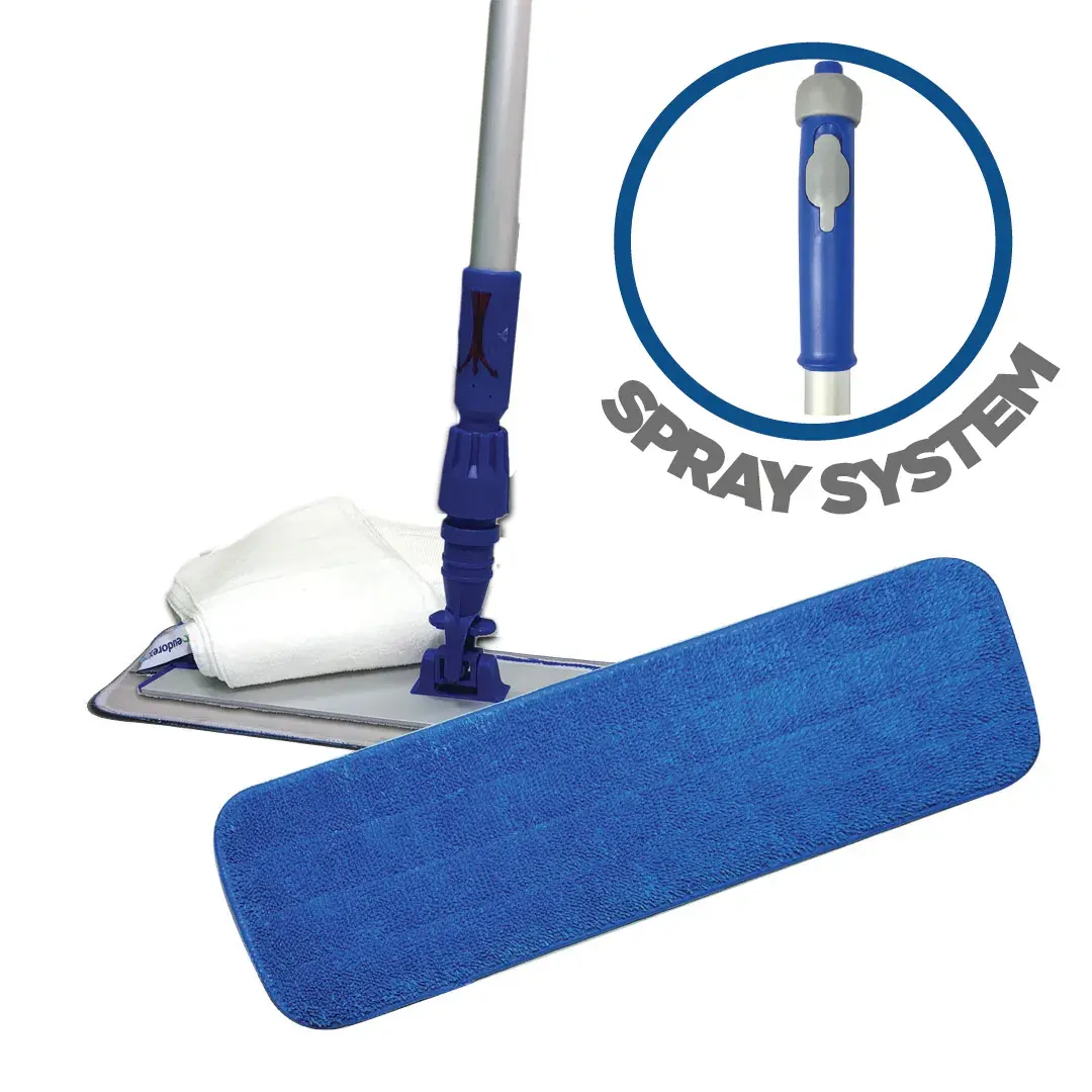 Manico con serbatoio da mezzo litro incorporato, apertura in alto per il rabbocco e pulsante per erogare il liquido. Premendo il pulsante sulla manopola esce l'acqua dai 3 ugelli alla base che vanno direzionati verso l'operatore; quindi con un movimento ad S, a ritroso, si effettua il lavaggio. L'autonomia di una ricarica va dai 70 ai 100 mq, a secondo della porosità del pavimento e della quantità di sporco da rimuovere.
