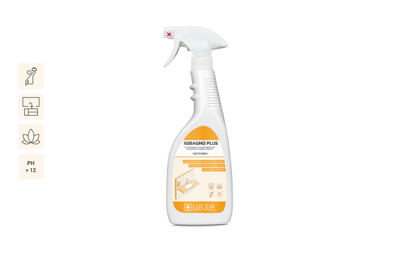 Detergente alcalino per la pulizia quotidiana dell’ambiente bagno. Particolarmente indicato per bagni con top e/o superfici in marmo, granito o pietre naturali. La sua formula ricca e innovativa permette in un’unica operazione di svolgere con efficacia le azioni di detergente, anticalcare,igienizzante e deodorante. Perfetto per rimuovere lo sporco da tutte le superfici lavabili del bagno: piastrelle e rivestimenti, box doccia, sanitari, rubinetterie, cromature, specchi, ecc. Lascia nell’ambiente una fresca, gradevole e duratura profumazione di Brezza Marina.