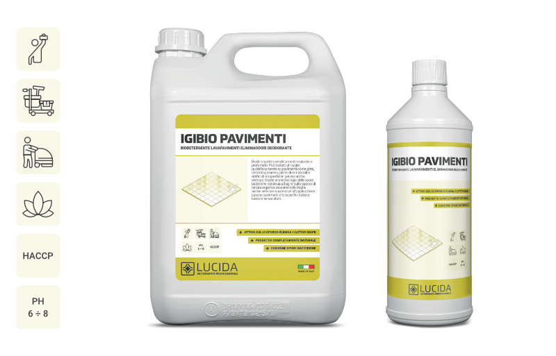 Biodetergente completamente naturale per l’utilizzo quotidiano su pavimenti e superfici in genere anche verticali come gres, ceramica, marmo, plastica, pietre dure naturali e artificiali. Grazie alla tecnologia delle spore batteriche continua ad agire sullo sporco di natura organica presente nelle fughe anche nelle ore successive all’applicazione. Lascia i pavimenti e le superfici trattate lucide e senza aloni. Dopo il trattamento rimane nell’ambiente una gradevole e duratura nota di Bouquet Floreale. Non utilizzare mai prodotti disinfettanti o igienizzanti contemporaneamente all’applicazione di IGIBIO PAVIMENTI, neanche nelle 48/72 ore successive.