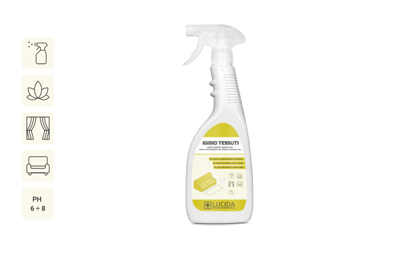 Detergente biologico pronto uso attivo sui residui di natura organica. Indispensabile per la pulizia e l’eliminazione dei cattivi odori localizzato sui tessuti e su tutte quelle imbottiture contaminate da residui organici quali: urina, sudore, emesi, acari, etc. Trova impiego negli Hotel, RSA, Case di Riposo, Collettivita` in genere, Tappezzeria Auto, ecc.. Lascia una gradevole sensazione di pulito.