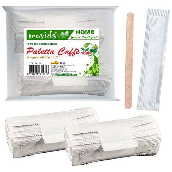 onfezione da 1000 palettine in legno imbustate singolarmente, ideali per mescolare caffè, tè e altre bevande calde. Perfette per bar, uffici, mense, hotel e servizi take-away, garantiscono massima igiene, praticità e sostenibilità.