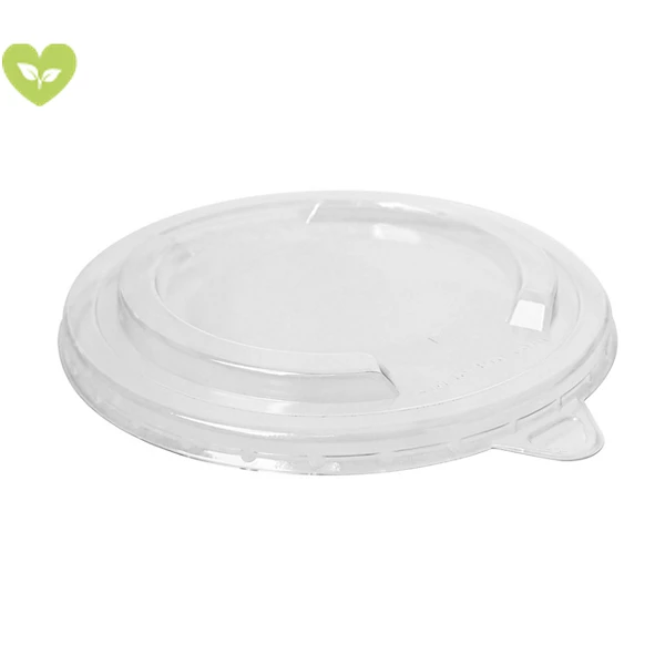 Coperchio monouso realizzato in resina termoplastica riciclata (PET) completamente riciclabile. Il coperchio separato agevola le fasi di preparazione, riempimento, servizio e della consumazione, oltre a rendere sicuro il trasporto. Ideale per tutte le attività che prevedono l'asporto, catering, fast-food, street-food e take-away.